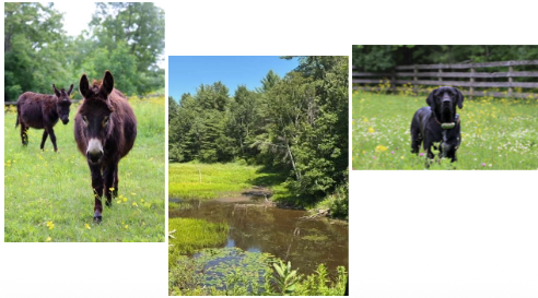 Kilometres of private trails to explore in surrounding forests, with many large ponds, streams, and a waterfall